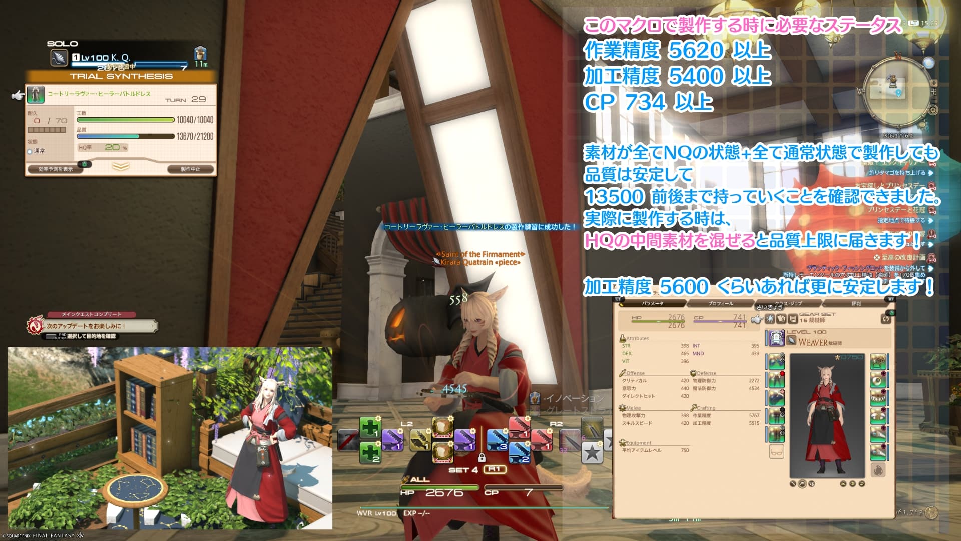 Patch7.4対応 コートリーラヴァー装備(工数10040)・中間素材(工数5622)製作マクロ
