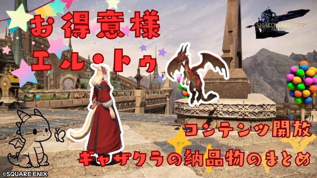 お得意様【FF14】お得意様エル・トゥのコンテンツ開放からギャザクラの納品物のまとめ