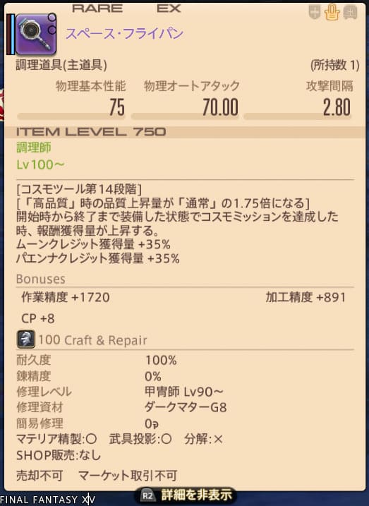 報酬や交換できるアイテムもたくさんあり、全てのクラスのコスモツールを製作するなど、全てを遊びつくそうと思うとものすごく時間がかかりそう。