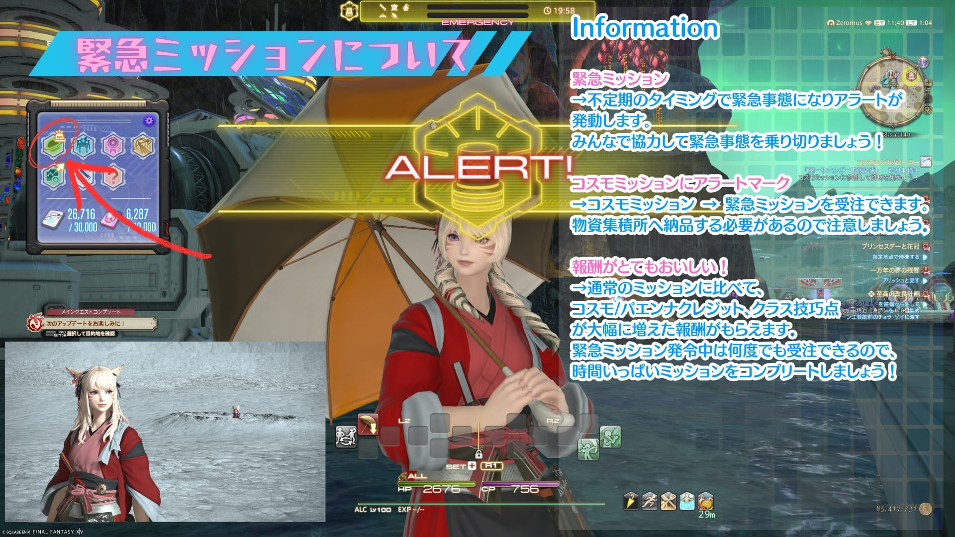 緊急ミッションは不定期のタイミングで緊急事態になりアラートが発動します。