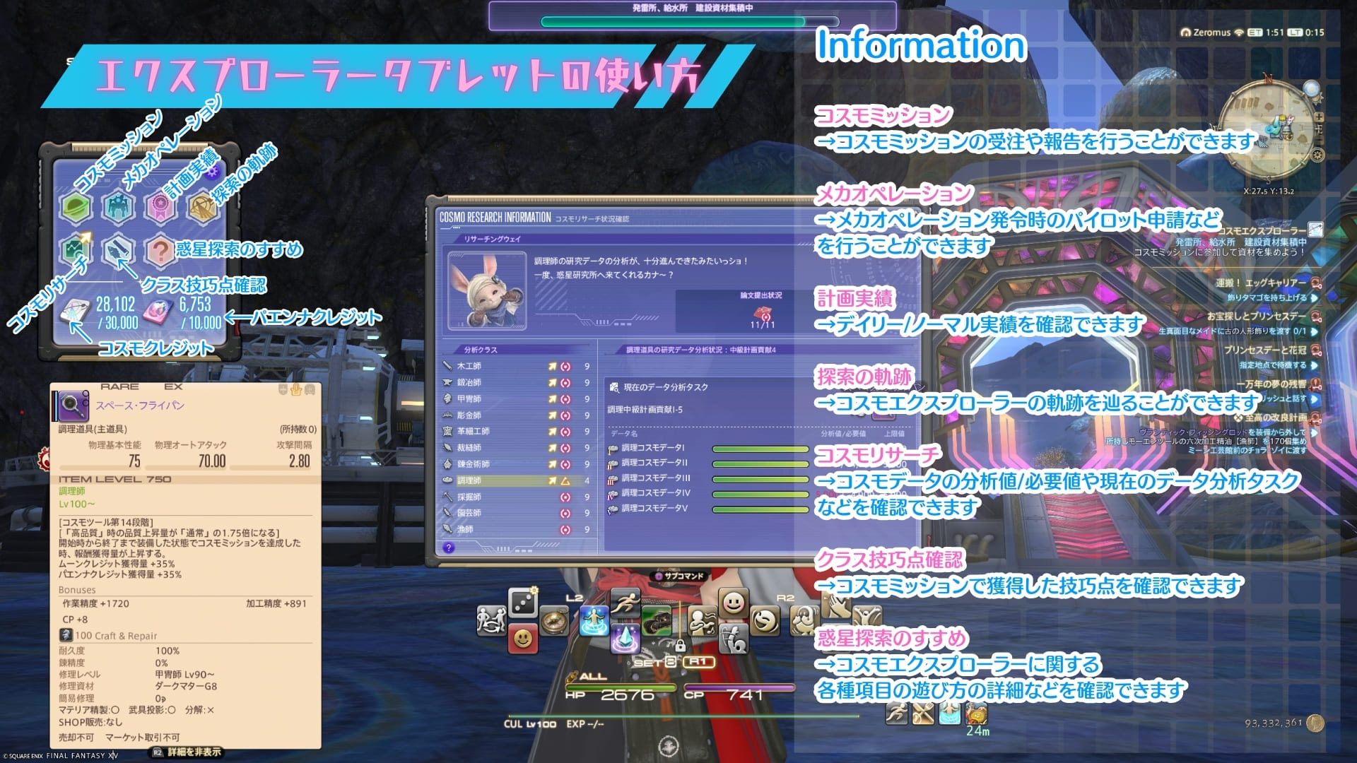 今回は、コスモエクスプローラーの開放場所と遊び方、Aランクミッションで使える製作マクロなどについてご紹介しました。