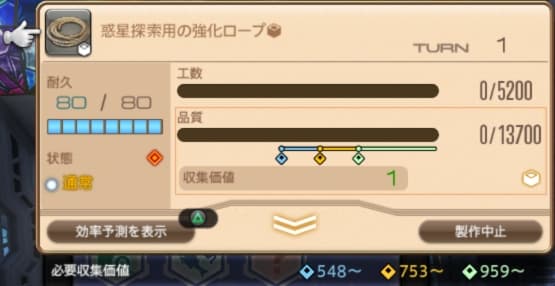 データ分析効率 + 50%(コスモデータ分析値が1.5倍になる)の状態が常時発動し、2本目以降を製作するのが一気にラクになります。