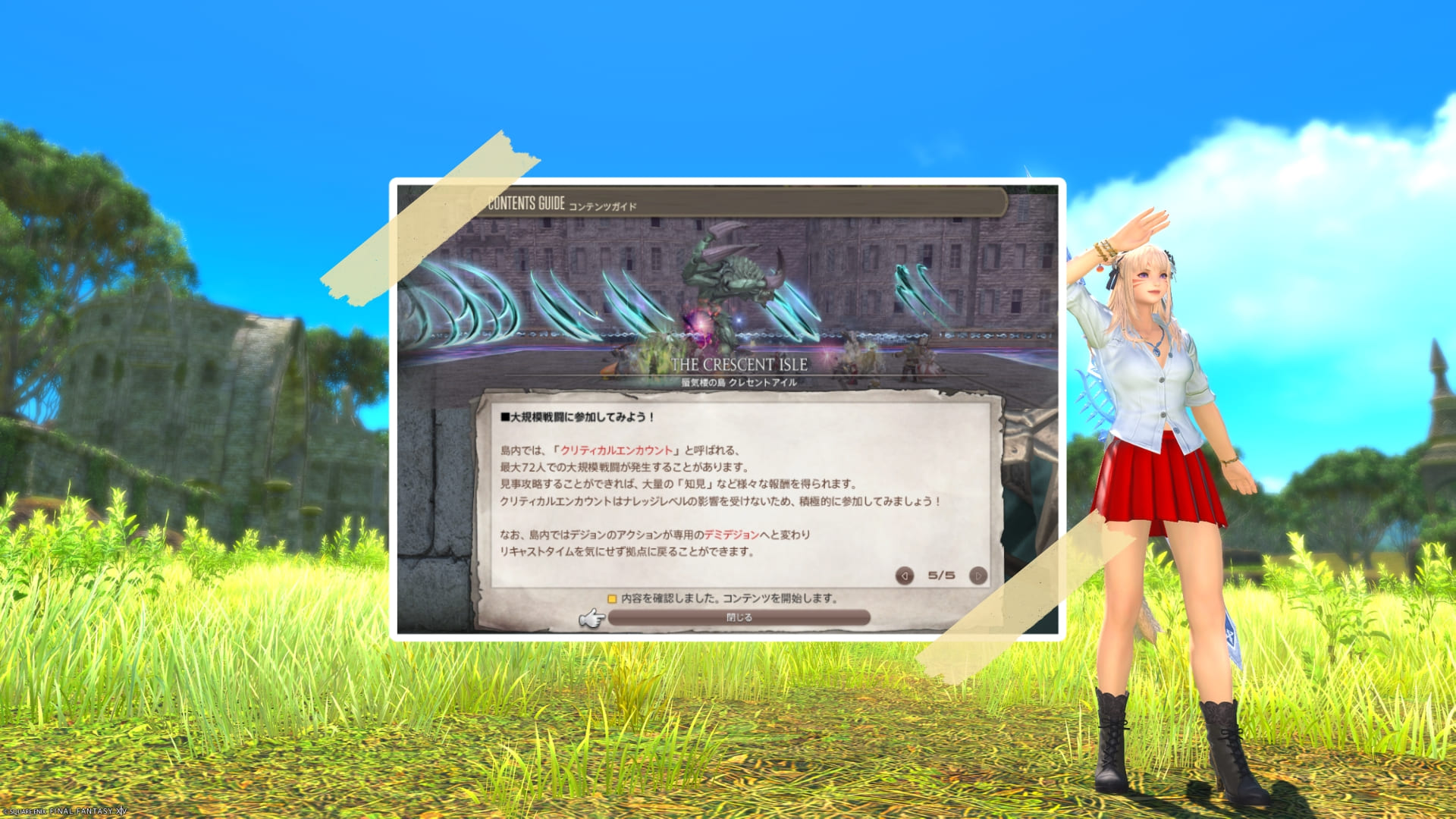 今回は、蜃気楼の島 クレセントアイルの開放場所および遊び方を書いたガイドブックのような内容になっています。