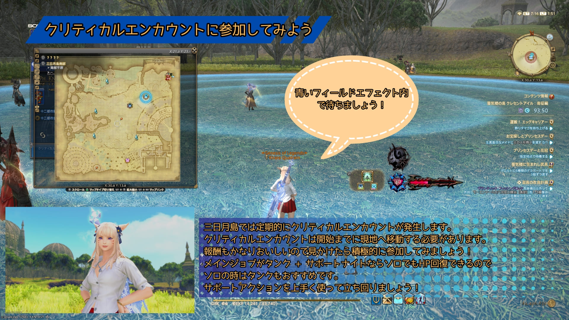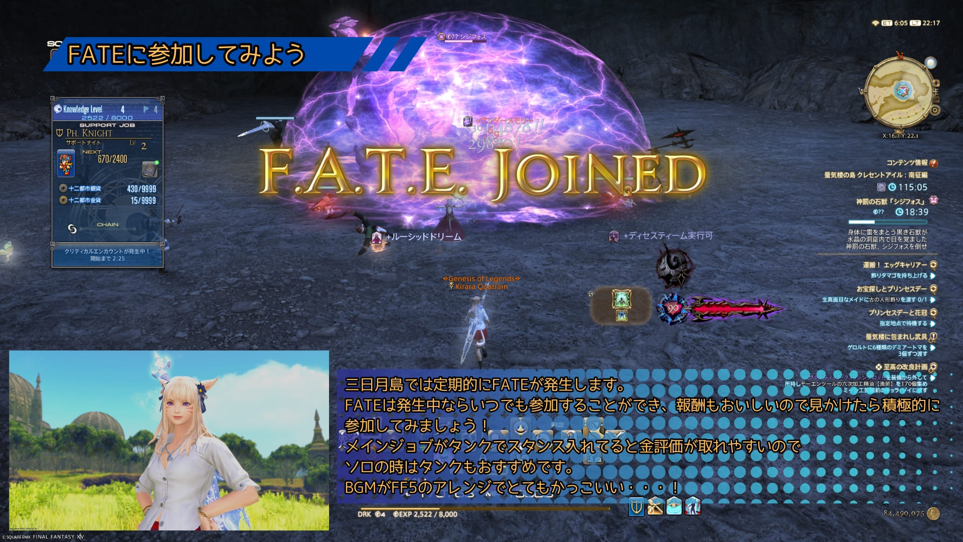 レベル上げはFATEやクリティカルエンカウントがよく発生するので、ナレッジレベルとサポートジョブのレベルも上がりやすいです。