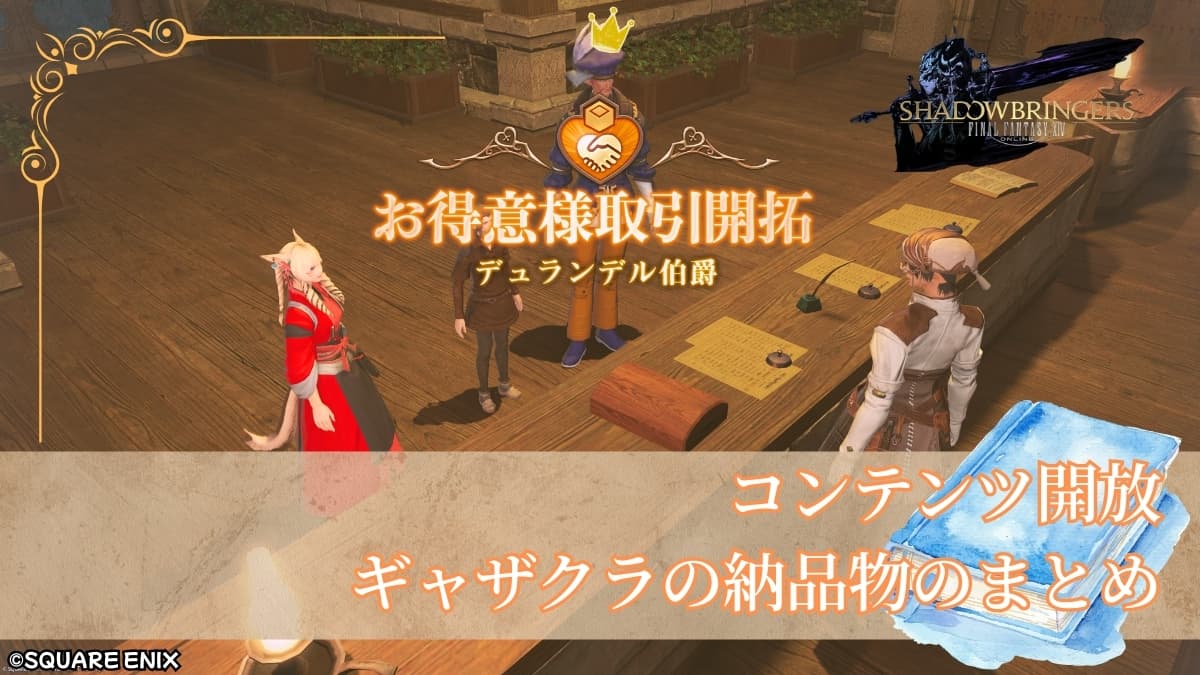お得意様デュランデル伯爵のコンテンツ開放からギャザクラの納品物のまとめ