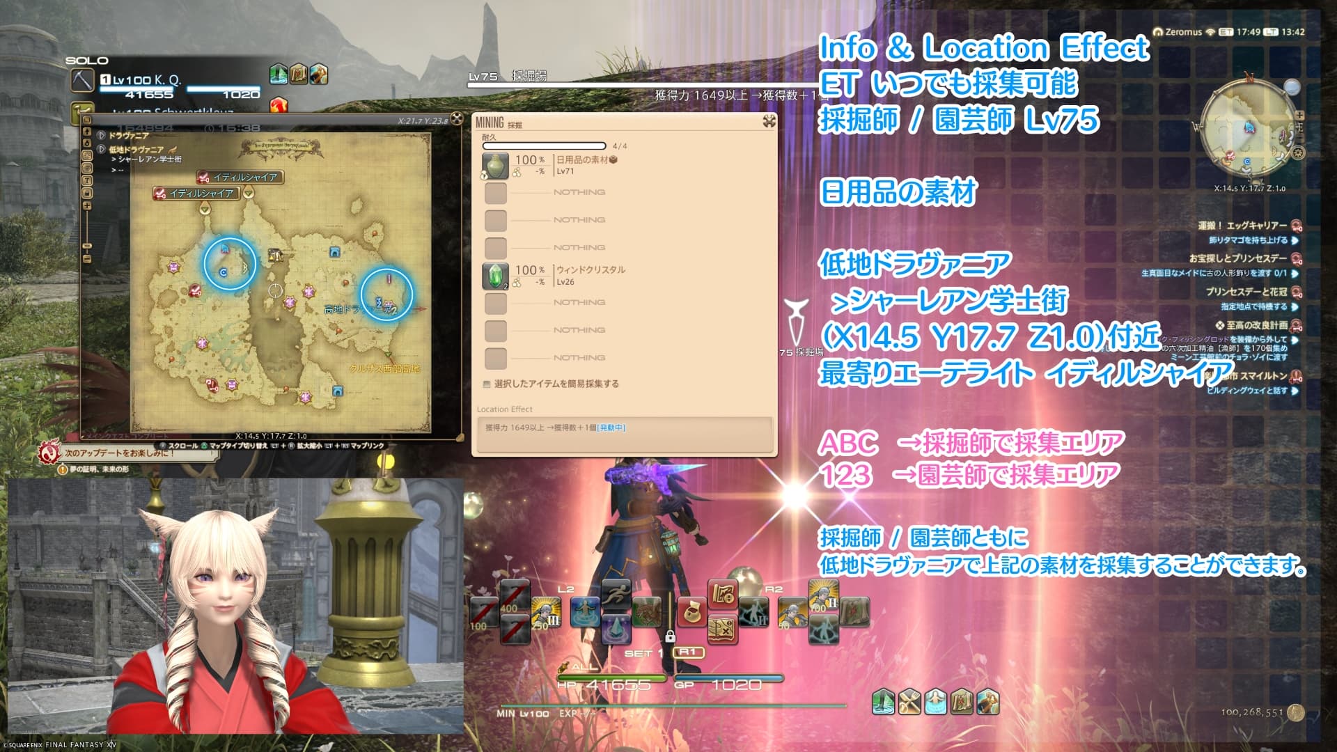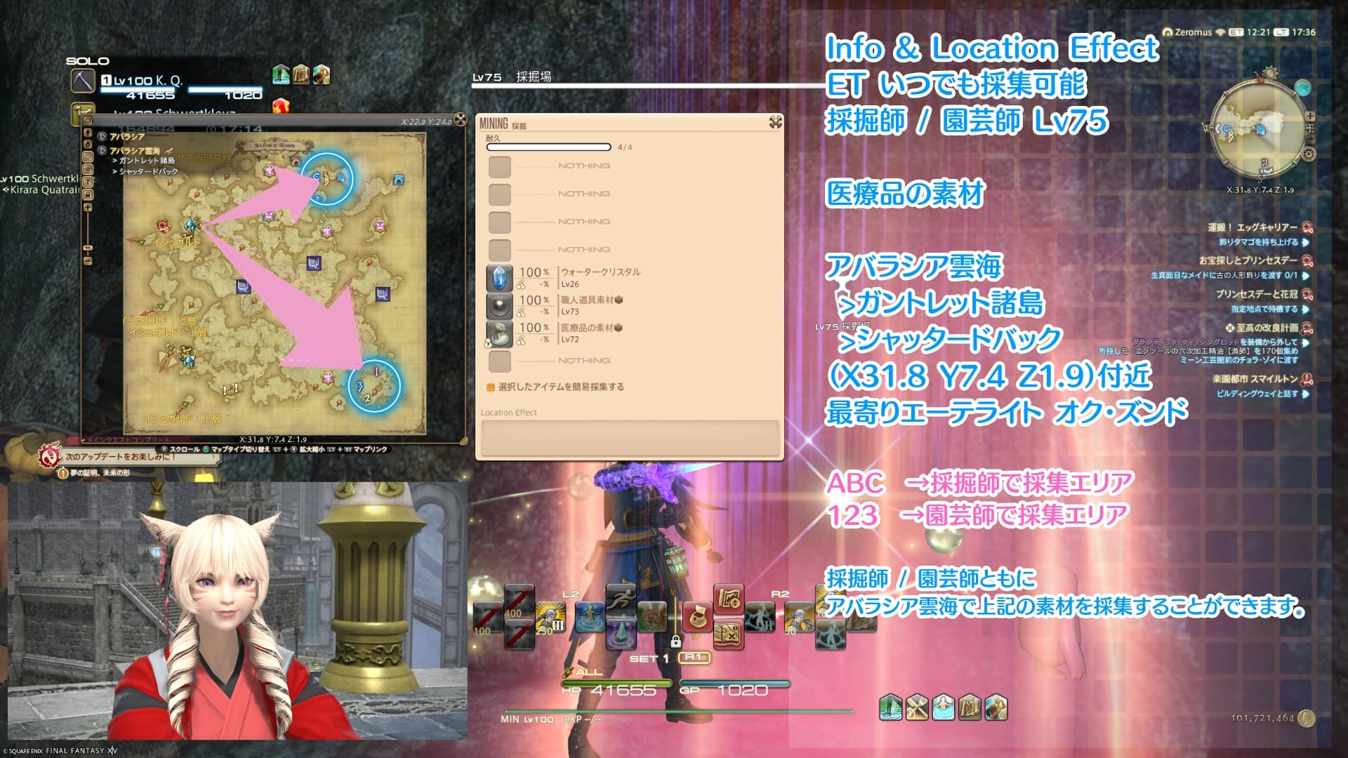 採集できる場所はそれぞれ異なりますが、採集できるエリアと採集するものは共通になっています。
