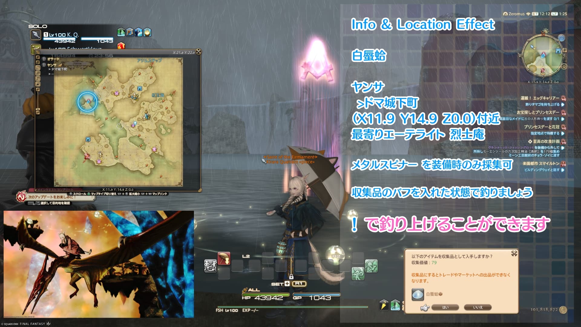 敬遠されがちな漁師ですが、特殊な条件などもなくメタルスピナーを装備して、収集品のバフさえ入れておけば対象の魚がすぐに釣れるので、漁師のレベル上げの途中の方はぜひやってみましょう!