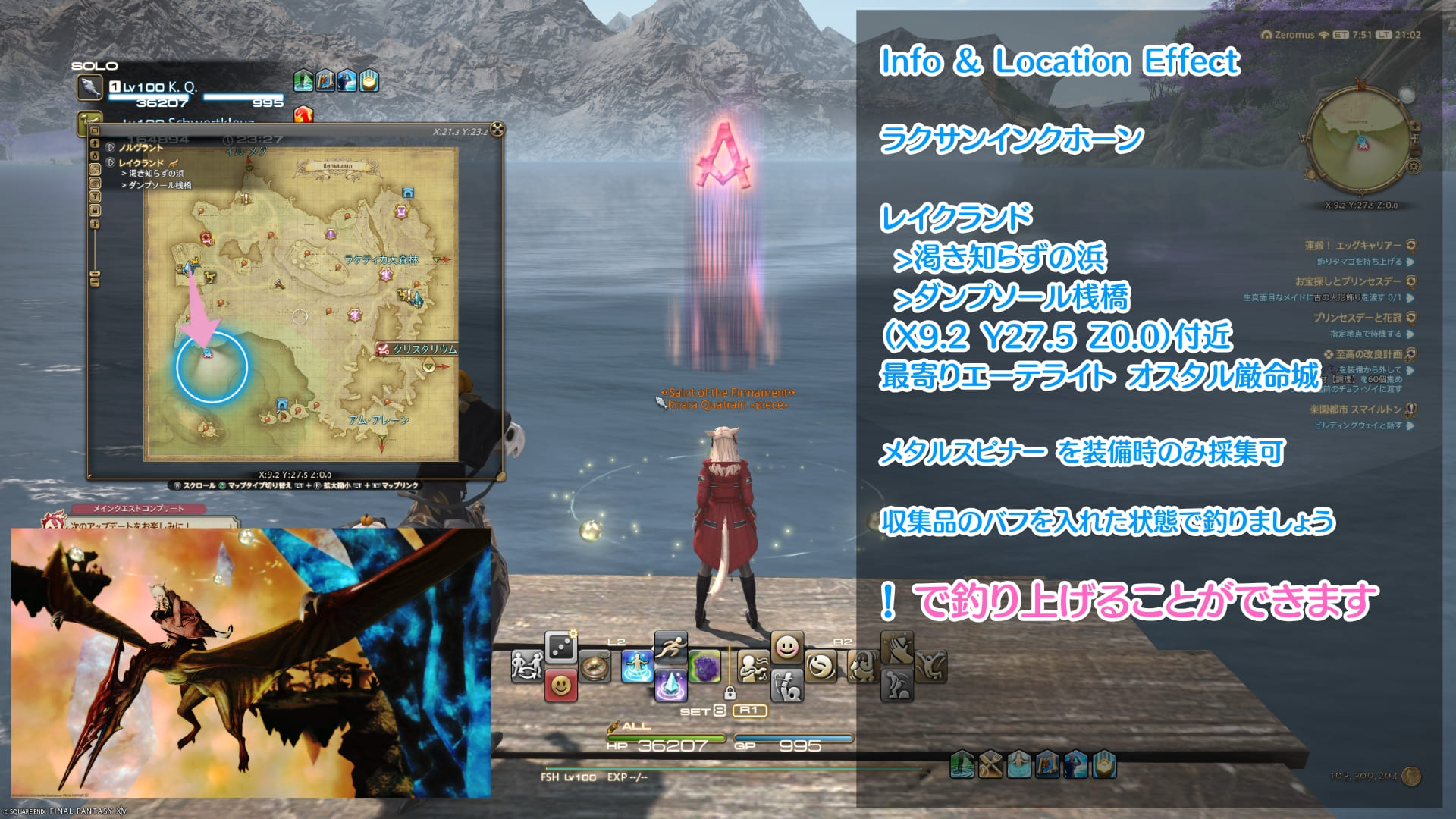 敬遠されがちな漁師ですが、特殊な条件などもなくメタルスピナーを装備して収集品のバフさえ入れておけば対象の魚がすぐに釣れるので、漁師のレベル上げの途中の方はぜひやってみてほしいです!
