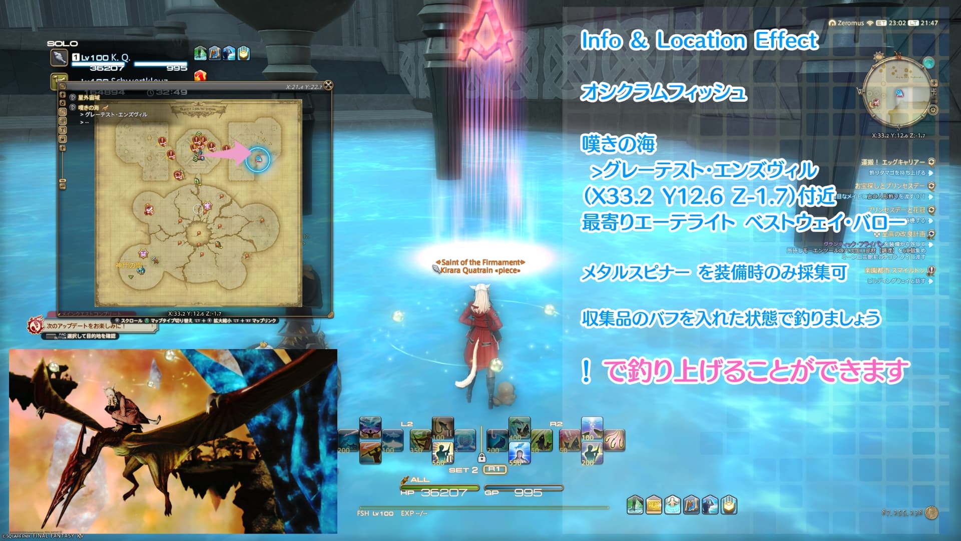 敬遠されがちな漁師ですが、特殊な条件などもなくメタルスピナーを装備して、収集品のバフさえ入れておけば対象の魚がすぐに釣れるので、漁師のレベル上げの途中の方はぜひやってみてほしいです!