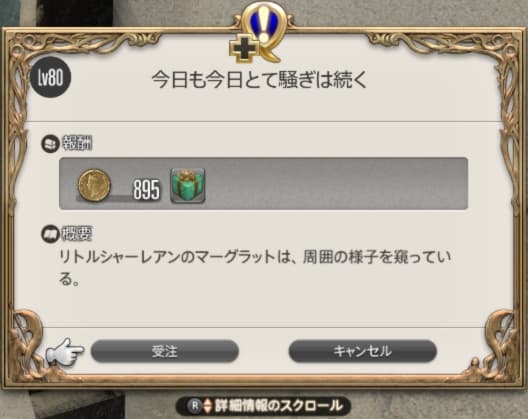 (このクエストは通常のサブクエスト扱いなのでお得意様の納品回数には影響ありません)