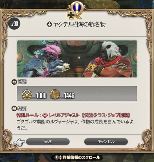 (このクエストは通常のサブクエスト扱いなので友好部族デイリークエストの受注数には影響ありません)