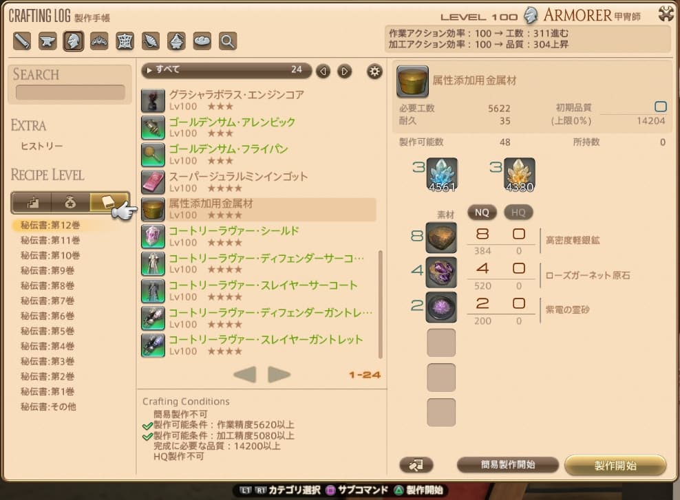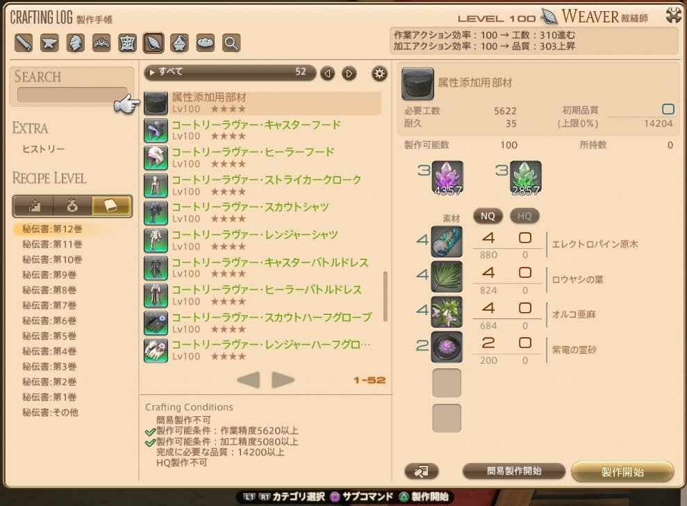 きらら以前のように、作りたいジョブでクエスト受注 → 作製という手順ではなくなったので作りやすくなりましたね!