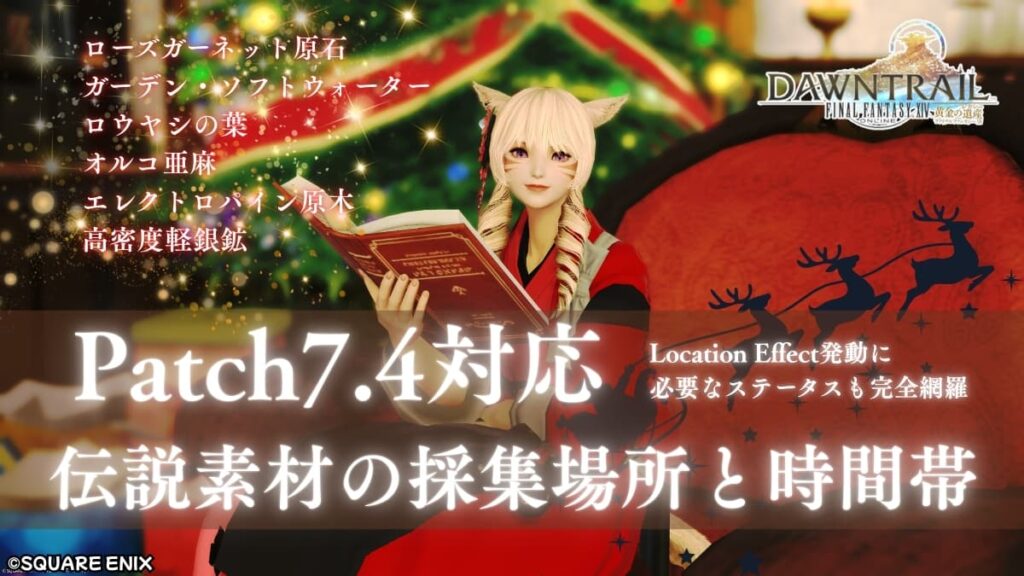 ギャザラー【FF14】Patch7.4対応 伝説素材の採集場所と時間帯と必要なステータス