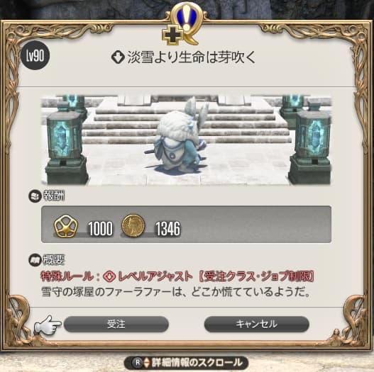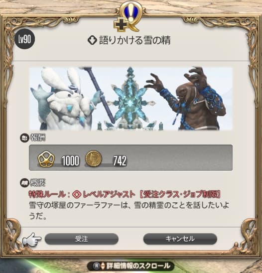 (このクエストは通常のサブクエスト扱いなので友好部族デイリークエストの受注数には影響ありません)